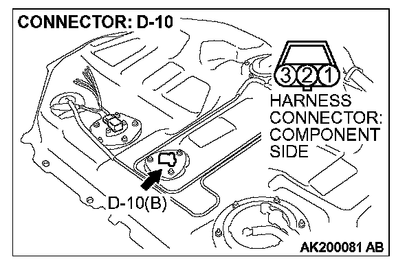 1. Disconnect the fuel tank temperature sensor connector D-10.