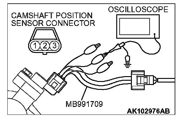 STEP 1. Using the oscilloscope, check the camshaft position sensor.