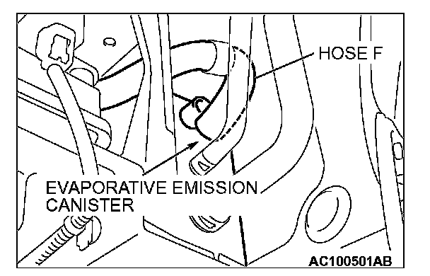 2. Disconnect hose F from the evaporative emission canister side, and connect a hand vacuum pump.