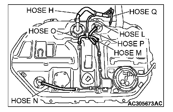 3. Plug the fuel pump feed nipple, hose H, hose L and hose Q connected to the fuel tank.
