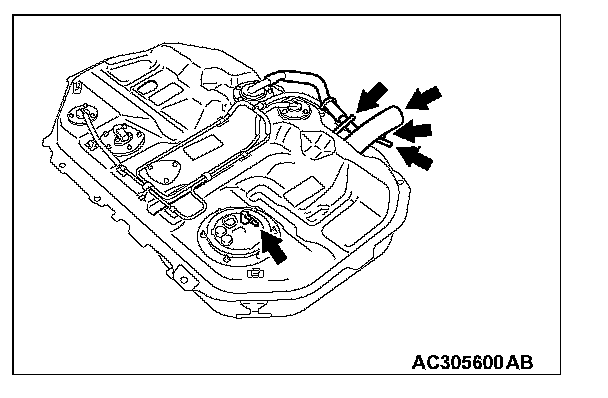 2. Plug the filler hose, fuel pump feed nipple, hose H, hose L and hose Q connected to the fuel tank.