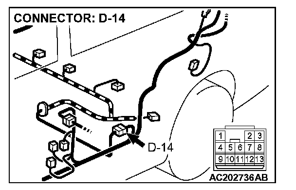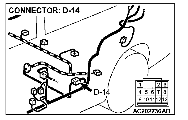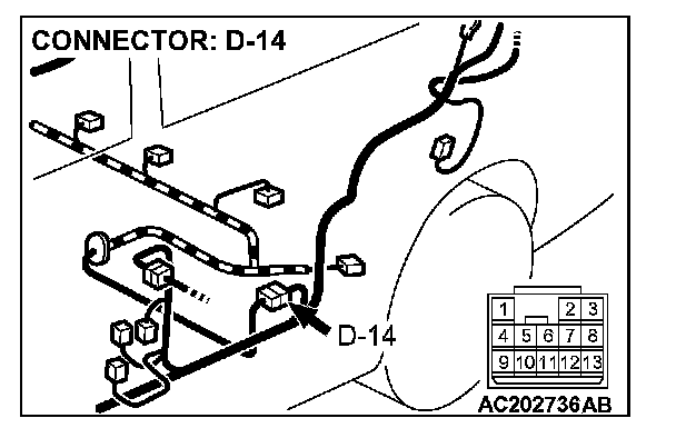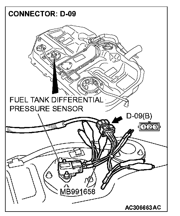 4. Connect special tool MB991658 to both halves of connector D-09.