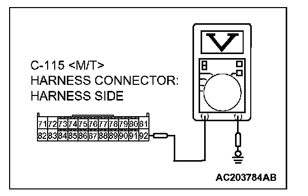 3. Measure the voltage between connector C-115 terminal 92