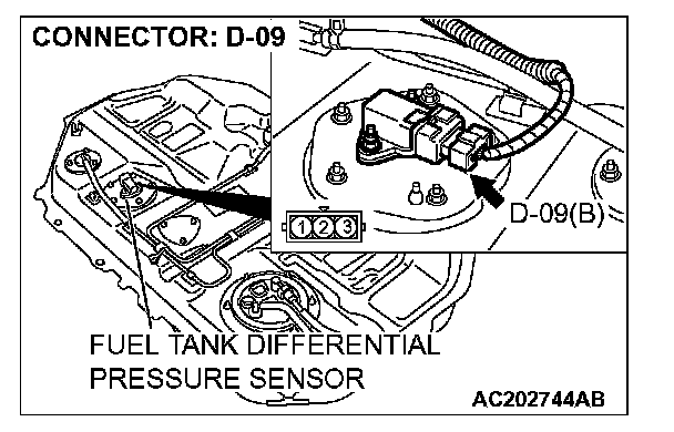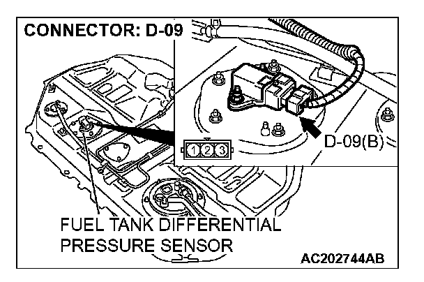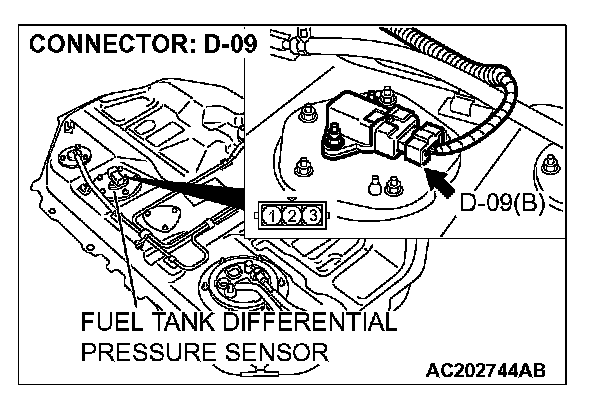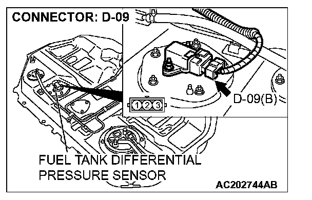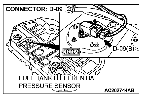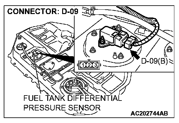 STEP 12. Check the signal voltage at fuel tank differential pressure sensor connector D-09.1. Remove the fuel tank. (Refer to Fuel Tank.)