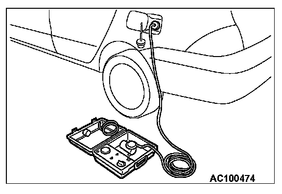 6. Connect an evaporative emission system pressure pump (Miller number 6872A) to the fuel filler neck and pressurize the fuel tank.