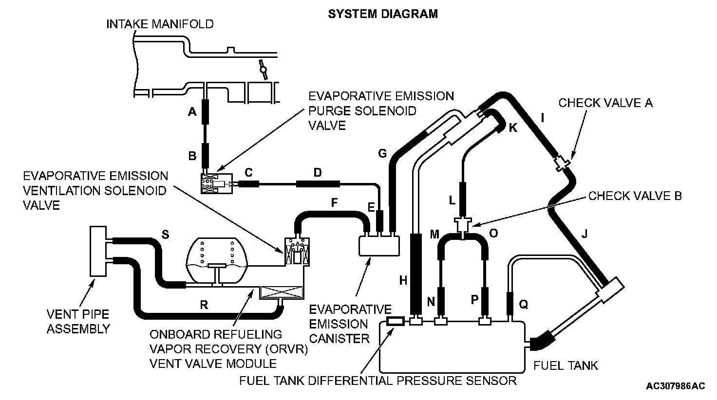 - When the evaporative emission purge solenoid is off, the fuel differential pressure sensor output voltage remains 1.0 volt or less for ten seconds.