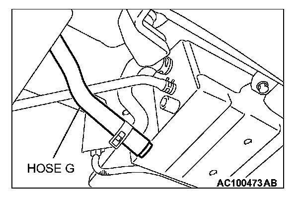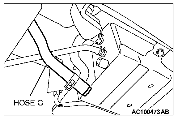 2. Disconnect hose G from the evaporative emission canister side, and plug the hose.