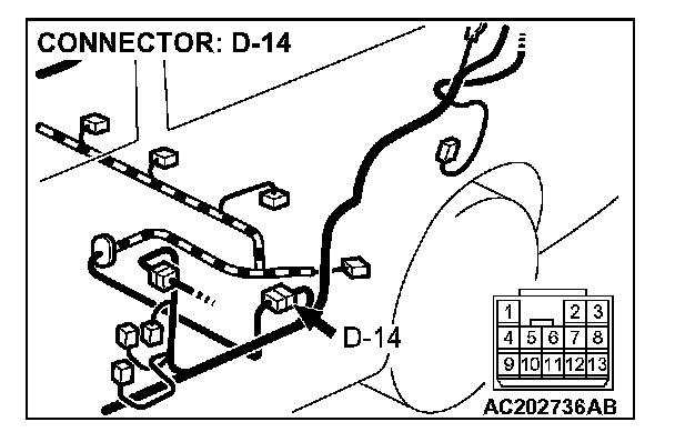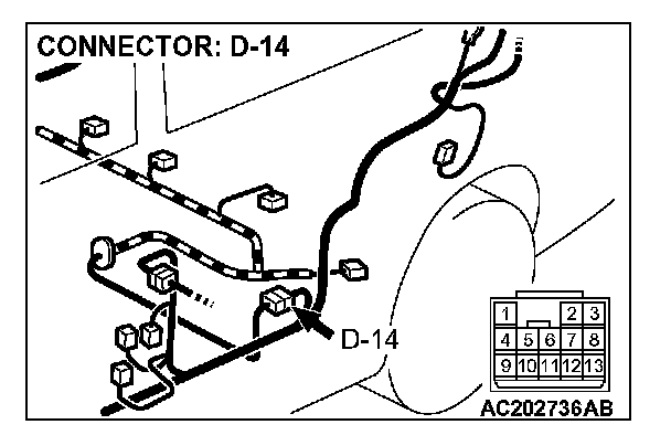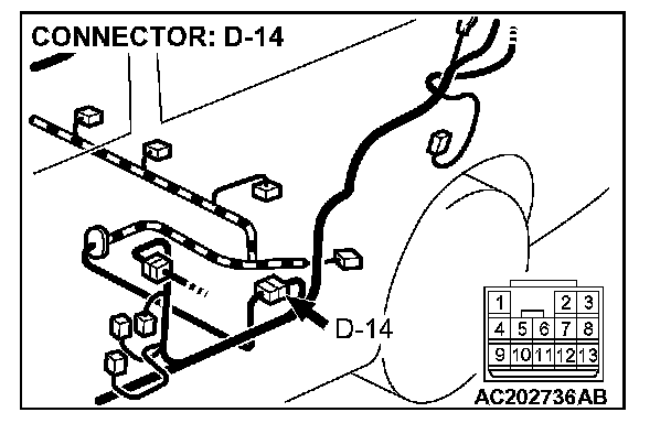 STEP 2. Measure the signal voltage at intermediate connector D-14 by backprobing.