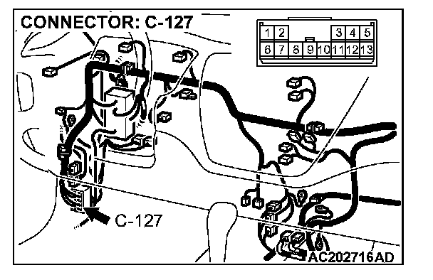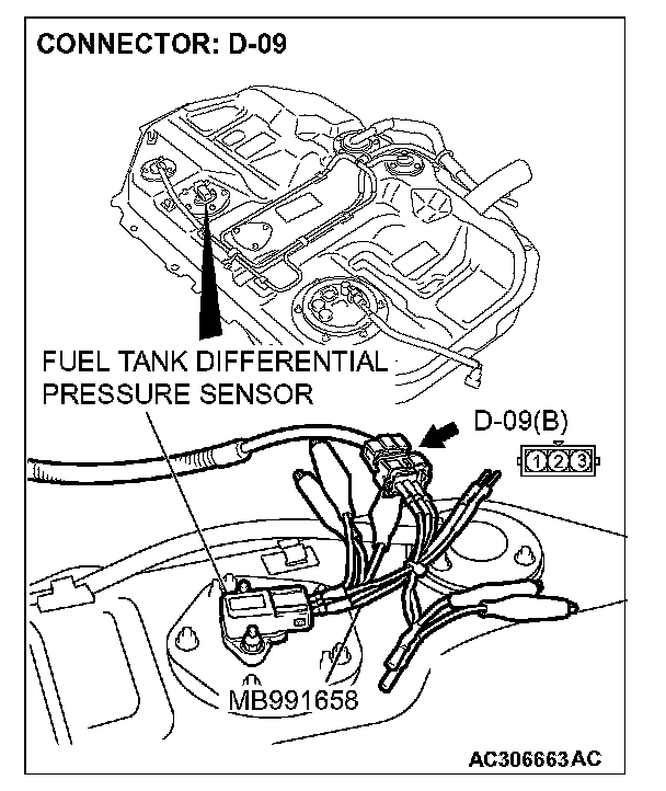 4. Connect special tool MB991658 to both halves of connector D-09.