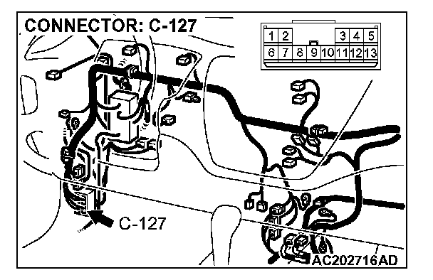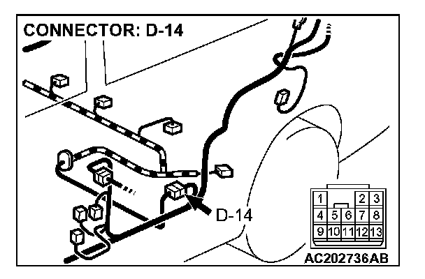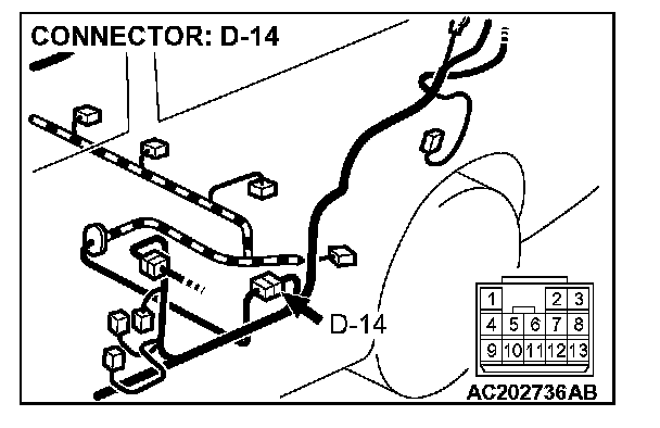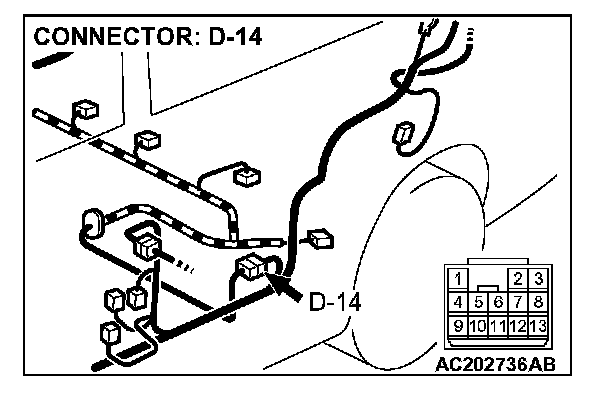 4. Connect special tool MB991658 to both halves of connector D-09.