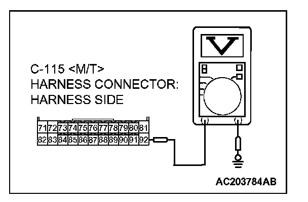 3. Measure the voltage between connector C-115 terminal 92