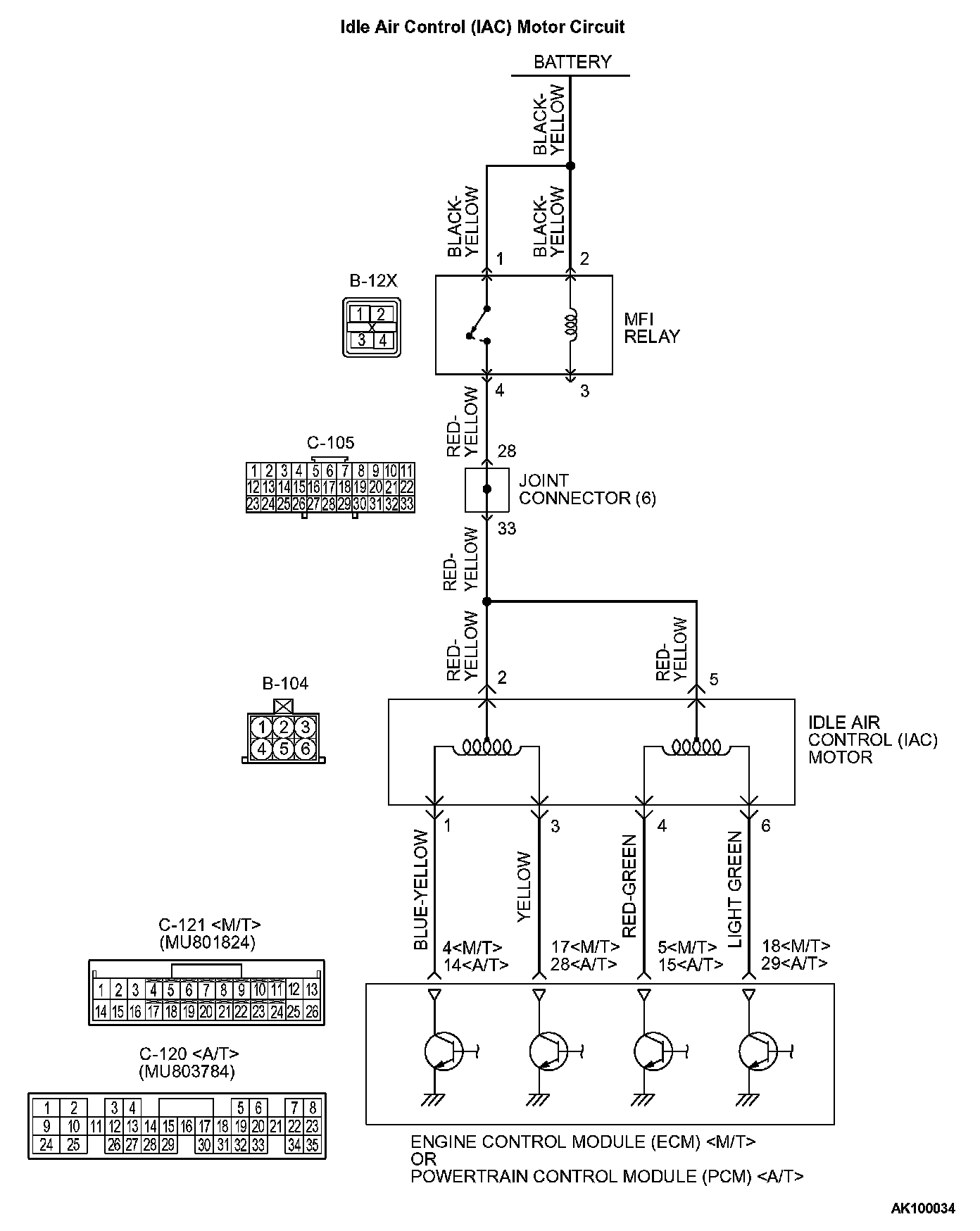 - The idle air control motor power is supplied from the MFI relay (terminal No. 4).