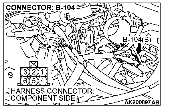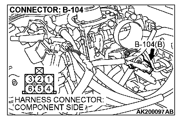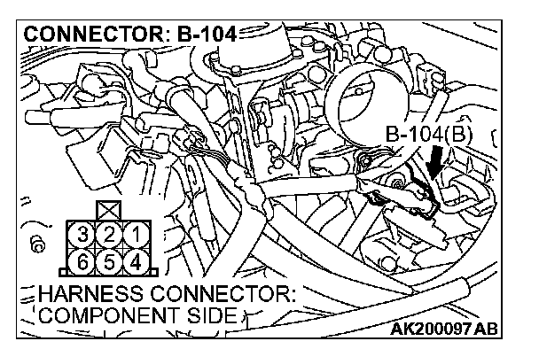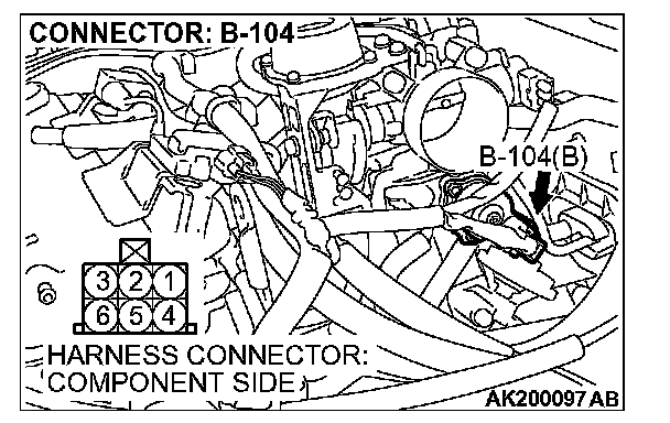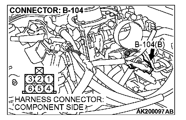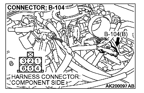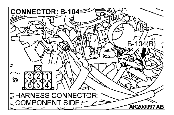 STEP 5. Measure the power supply voltage at idle air control motor harness side connector B-104.