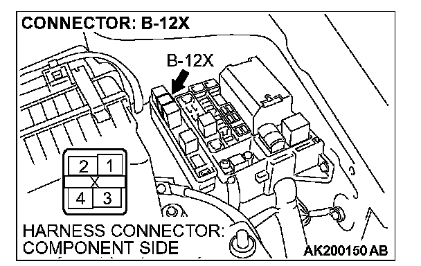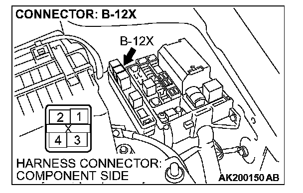 STEP 6. Check harness connector B-12X at MFI relay for damage.