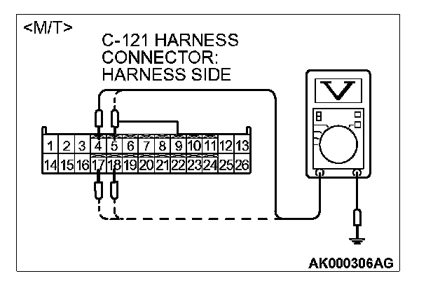 STEP 7. Measure the power supply voltage at ECM connector C-121