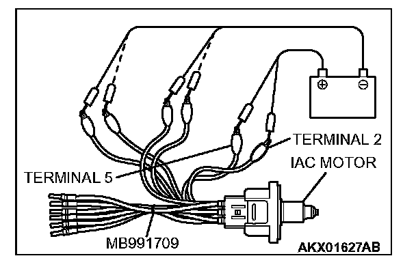 2. Connect special tool MB991709 to the idle air control motor. (All terminals should be connected.)
