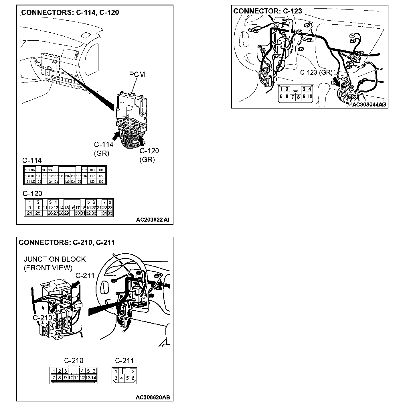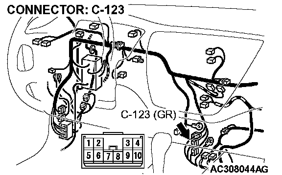 STEP 3. Check intermediate connector C-123 and junction block connector C-210 for loose, corroded or damaged terminals, or terminals pushed back in the connector.