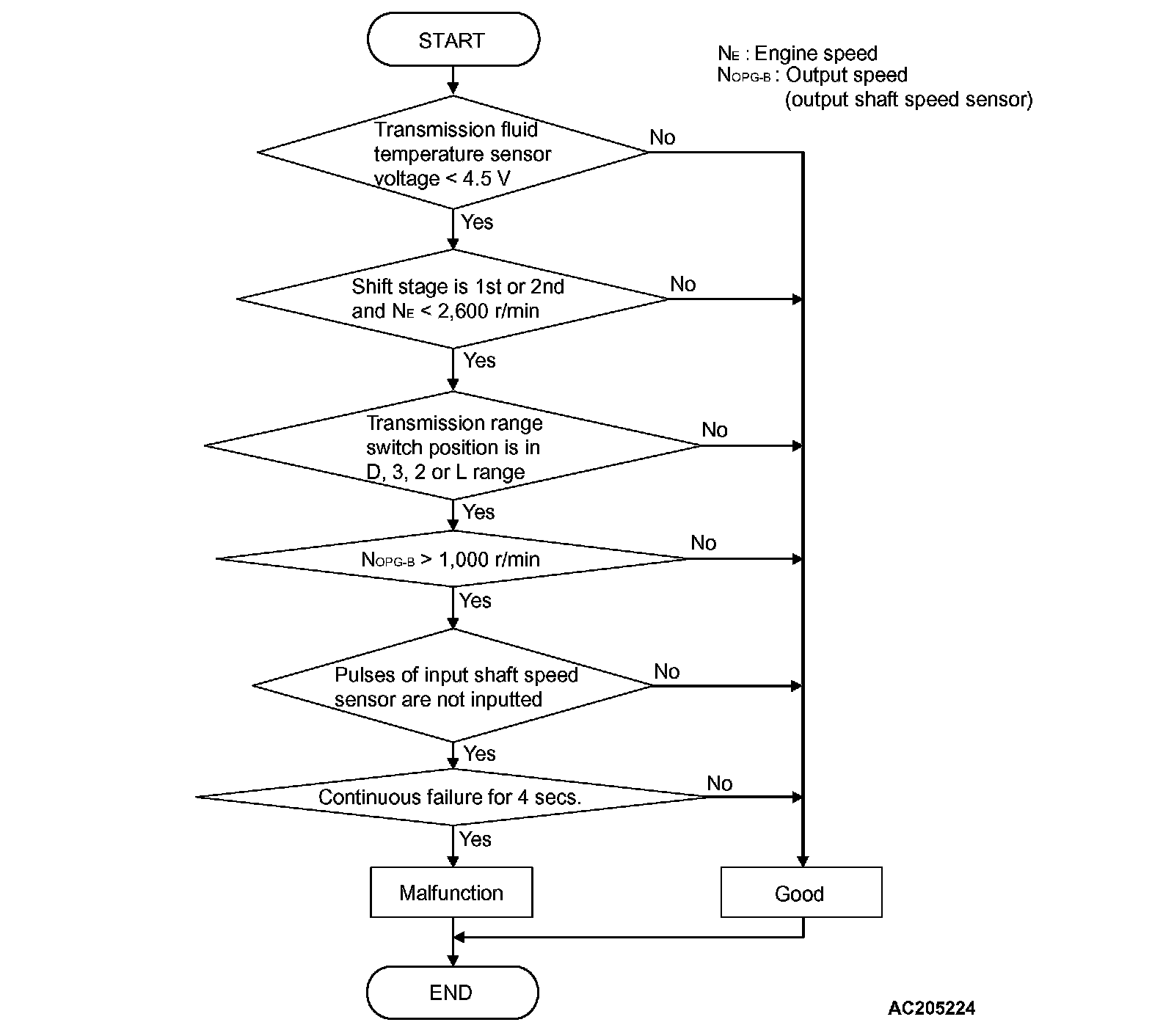 ^ If there is no detection pulse from input shaft speed sensor (turbine rotation) even during driving test at more than specified speed, PCM judges that input shaft speed sensor has a failure.