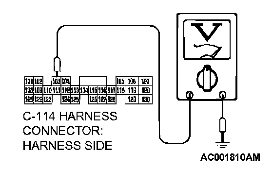 STEP 6. Measure the PCM output voltage to the speed sensor at the PCM connector C-114 by backprobing.