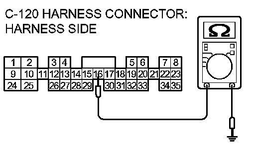 3. Measure the resistance between terminal 16 and ground.