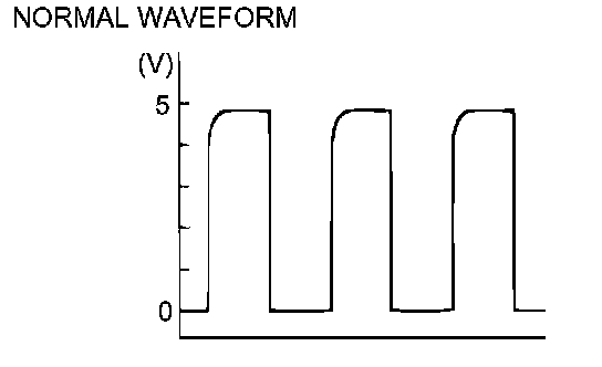 ^ The input shaft speed sensor waveform should show a pattern similar to the illustration. The maximum value should be 4.8 volts or more and the minimum value 0.8 volt or less. The output waveform should not contain electrical noise.