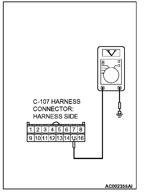 4. Measure the voltage between auto-cruise control-ECU connector C-107 terminal 15 and ground by backprobing.