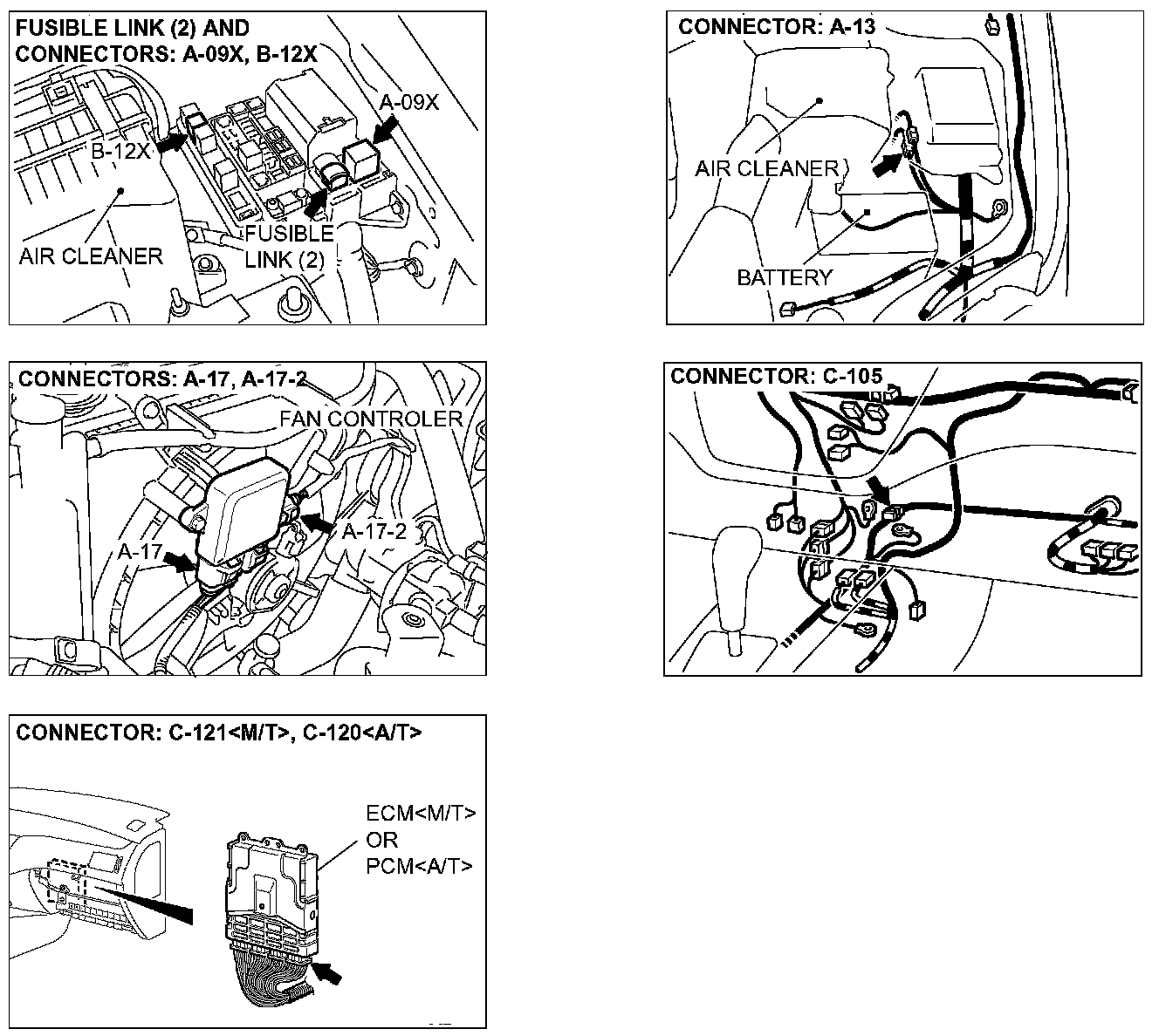 1) Do not disconnect ECM connector C-121 [M/T] or PCM connector C-120 [A/T].