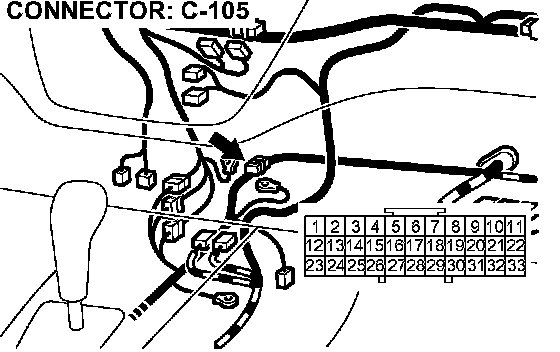NOTE: After inspecting intermediate connector A-13 terminal 8 and joint connector C-105 terminal 33, 28 inspect the wires. If intermediate connector A-13 and joint connector C-105 are damaged, repair or replace them.