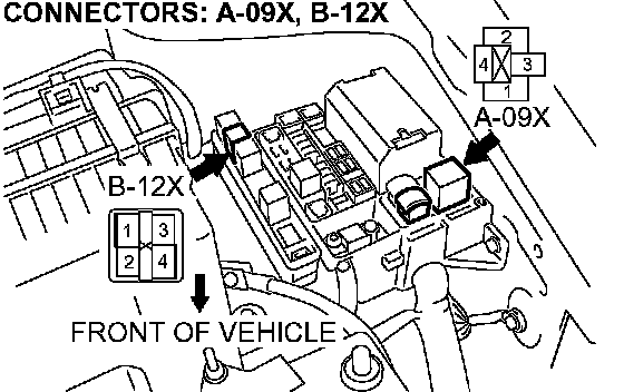 STEP 6. Check for harness damage between MFI relay connector B-12X and fan control relay connector A-09X.