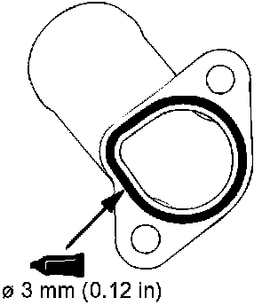 2. Apply a 3 mm (0.12 inch) diameter bead of sealant Mitsubishi Genuine Parts number MD970389, or equivalent to the thermostat case.