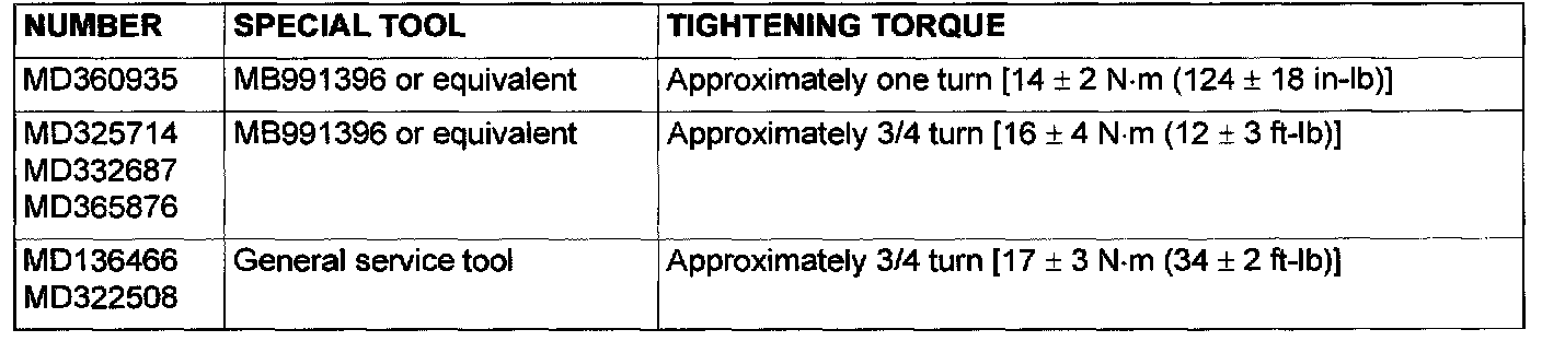 This vehicle is equipped with a full-flow, throw-away oil filter. The same type of filter is recommended as a replacement filter for this vehicle. It is possible, particularly in cold weather, that this vehicle may develop high oil pressure for a short duration. Make sure that any replacement filter used on this vehicle is a high-quality filter. The filter must withstand a pressure of 1,765 kPa (256 psi) [manufacturer's specifications] to avoid filter and ultimately engine damage. The following is a high-quality filter and is strongly recommended for use on this vehicle: Mitsubishi Engine Oil Filter Part number MD136466, MD322508, MD325714, MD332687, MD360935 and MD365876. Any replacement oil filter should be installed in accordance with the oil filter manufacturer's installation instructions.