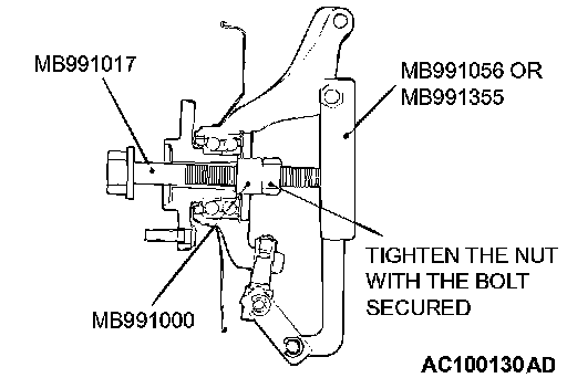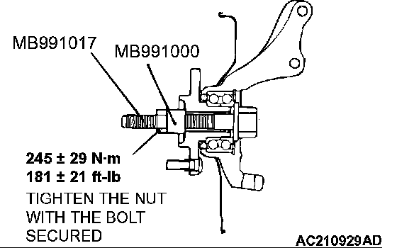 1. Tighten special tools MB991000 (MB990998) and MB991017 to the specified torque, and then press the hub into the knuckle.