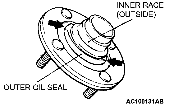 CAUTION: When removing the inner race (outside) from the hub, be careful not to let the hub drop.