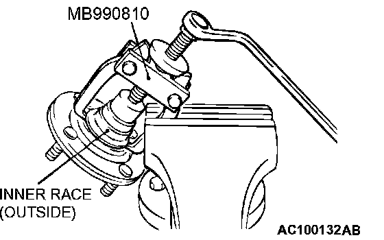 2. Remove the wheel bearing inner race (outside) from the front hub by using special tool MB990810.