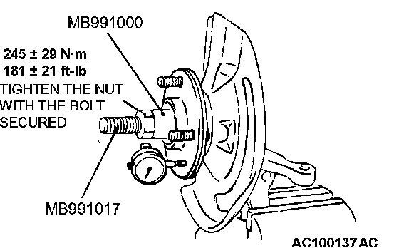 3. Measure the hub starting torque by using the special tools MB990326 and MB990685.