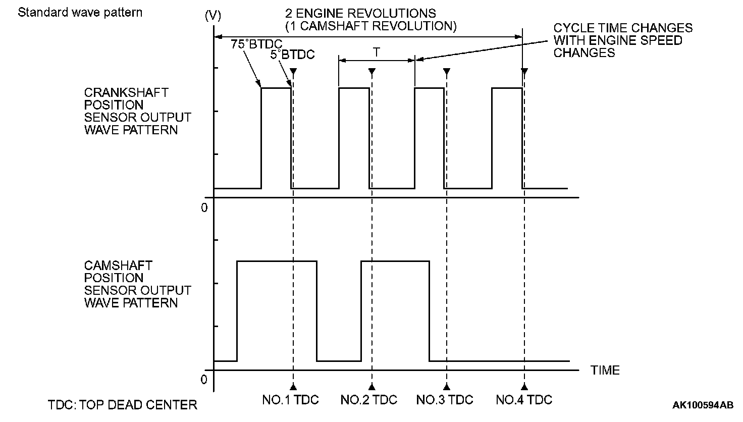 - Rectangular wave pattern is output even when the engine is not started.