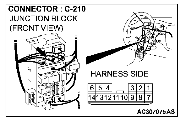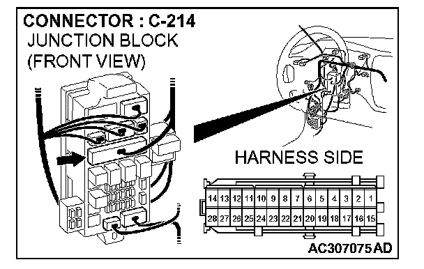 1. Disconnect ETACS-ECU connector C-226 and measure the voltage available at the junction block side of the connector.