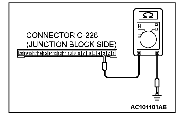 1. Disconnect ETACS-ECU connector C-226 and measure the resistance available at the junction block side of the connector.