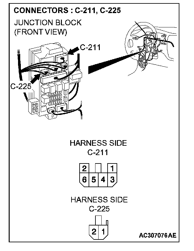 NOTE: Also check intermediate connectors C-18, C-126, junction block connectors C-211 and C-225 for loose, corroded, or damaged terminals, or terminals pushed back in the connector. If intermediate connectors C-18, C-126, junction block connector C-211 or C-225 is damaged, repair or replace the damaged component(s) as described in Harness Connector Inspection.