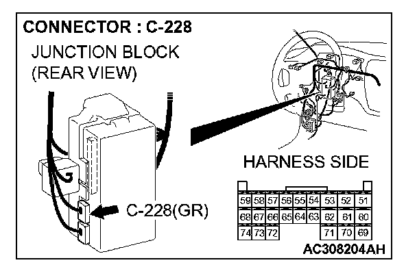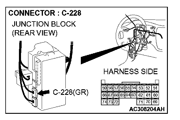 STEP 8. Check ETACS-ECU connector C-228 for loose, corroded or damaged terminals, or terminals pushed back in the connector.