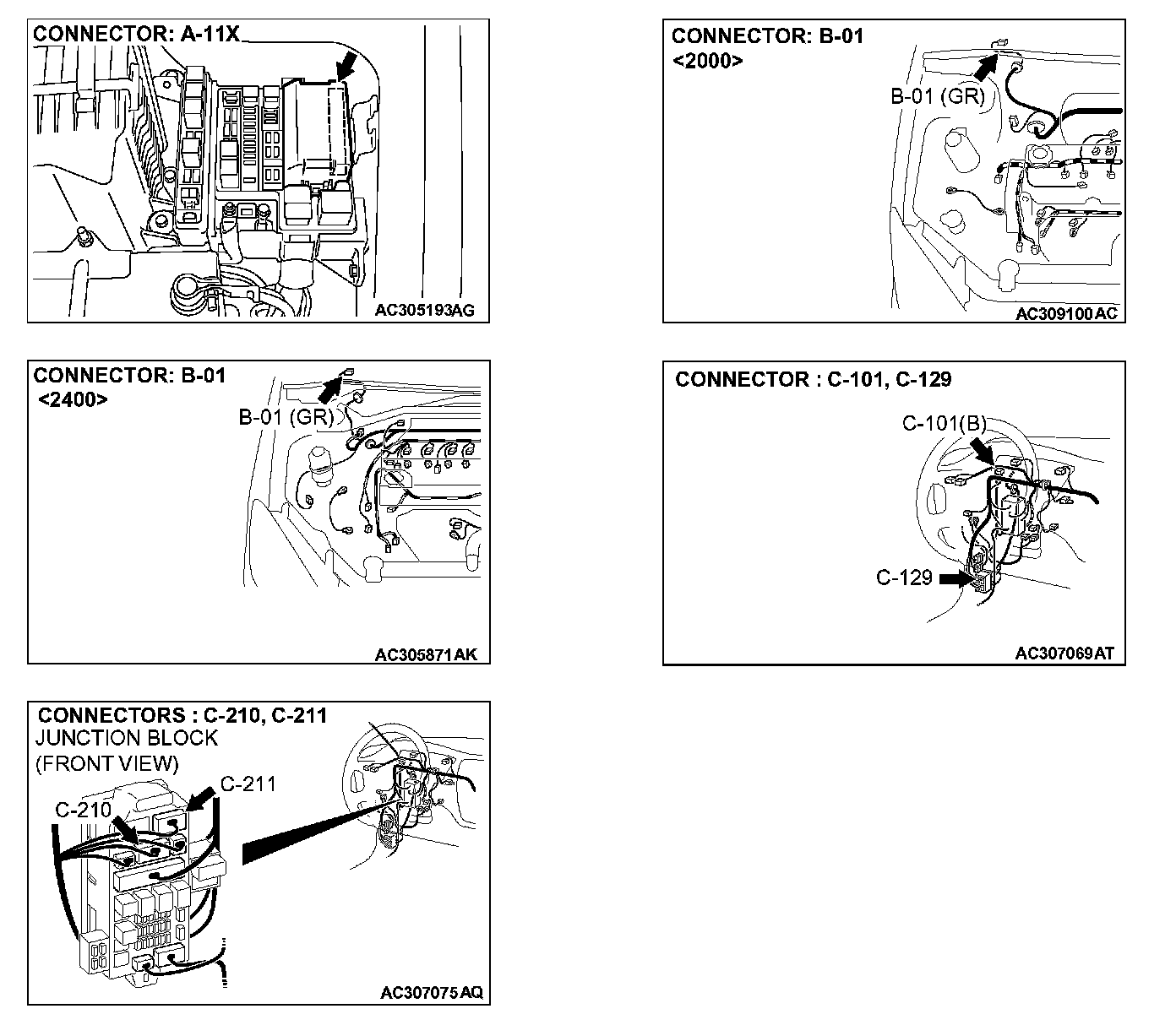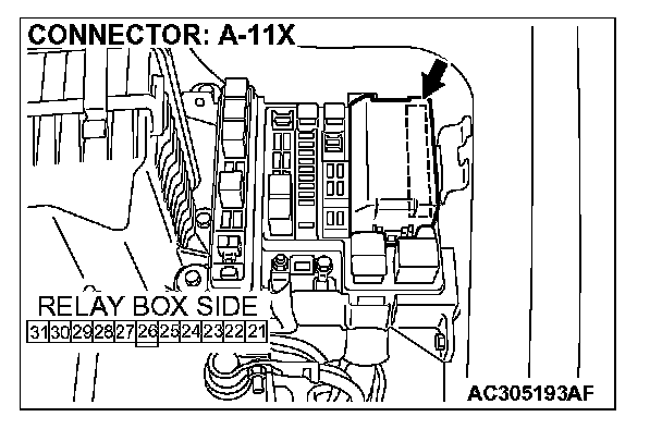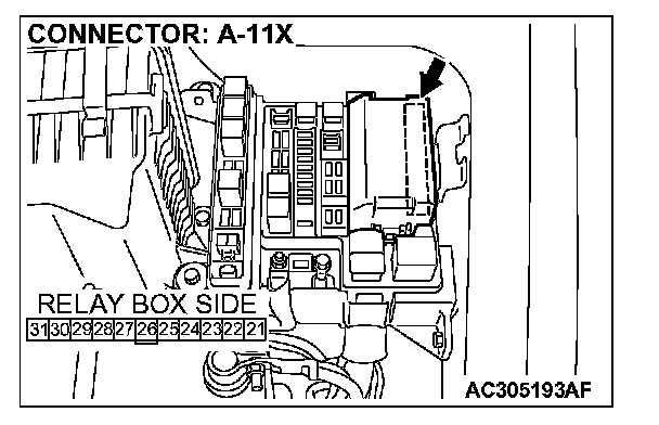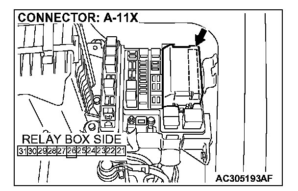 STEP 7. Check the front-ECU connector A-11X for loose, corroded or damaged terminals, or terminals pushed back in the connector.