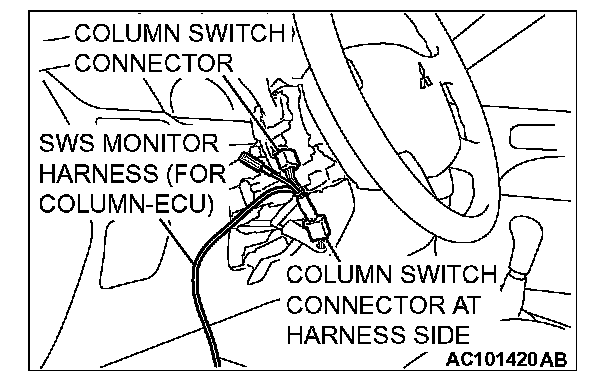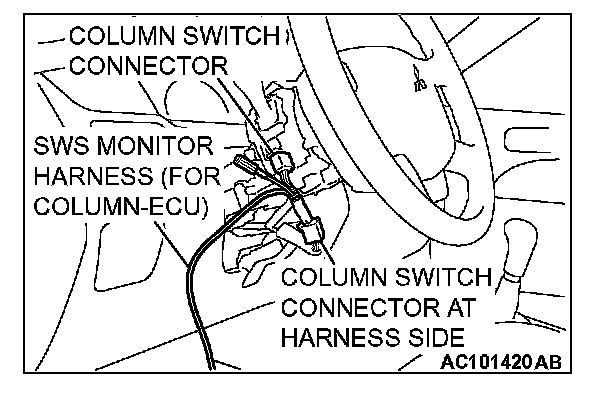 2. Connect SWS monitor kit MB991862 to the column switch connector.