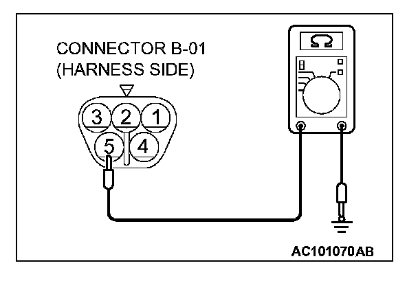 STEP 6. Check the wiring harness between windshield wiper motor connector B-01 (terminal 5) and ground.