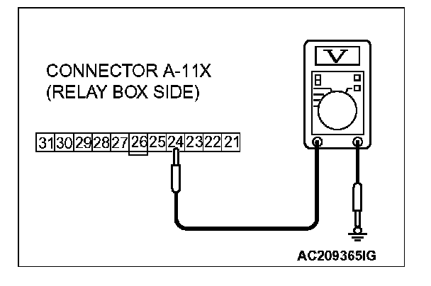 1. Disconnect front-ECU A-11X and measure the voltage available at the relay box side of the connector.