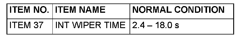 NOTE: Also check that the windshield wiper interval changes smoothly when the windshield intermittent wiper interval adjusting knob is rotated from "SLOW" to "FAST" positions.