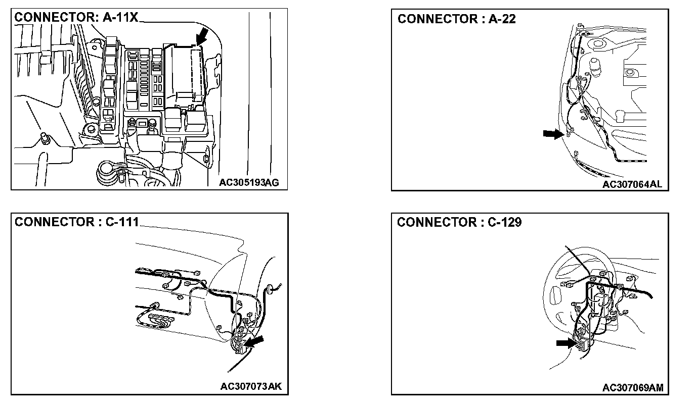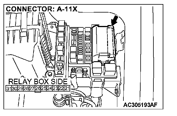 STEP 8. Check front-ECU connector A-11X for loose, corroded or damaged terminals, or terminals pushed back in the connector.