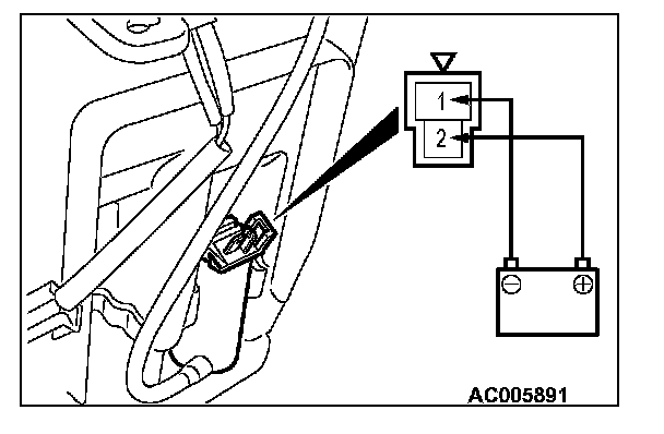 3. When battery voltage is applied between terminals 1 and 2, washer fluid should gush out.