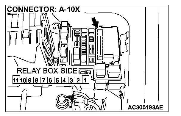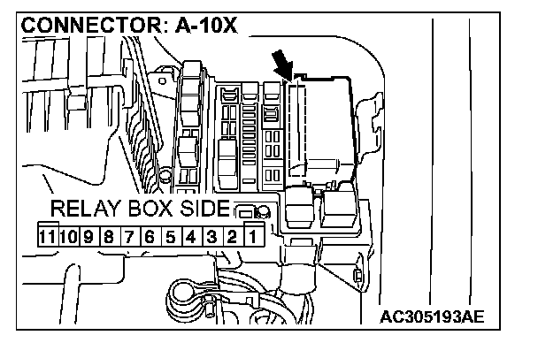 STEP 3. Check the front-ECU connector A-10X for loose, corroded or damaged terminals, or terminals pushed back in the connector.