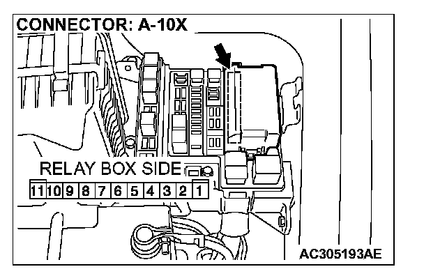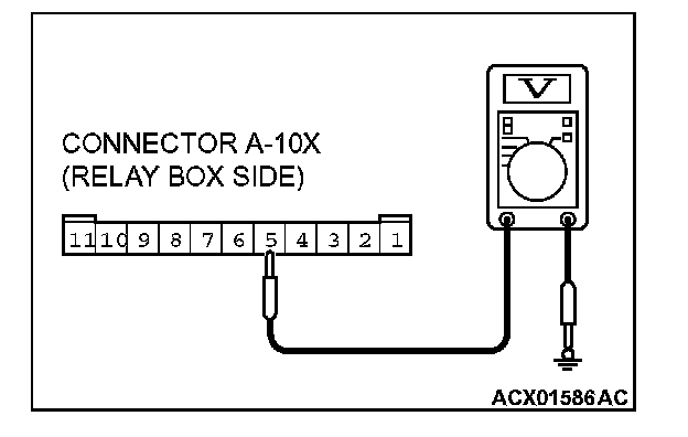 1. Disconnect front-ECU connector A-10X and measure the voltage available at the relay box side of the connector.