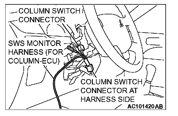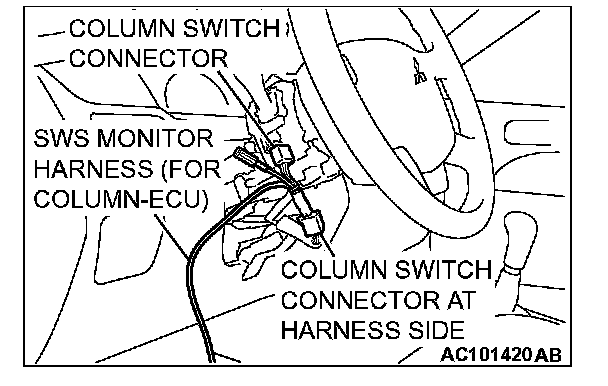 2. Connect SWS monitor kit MB991862 to the column switch connector.